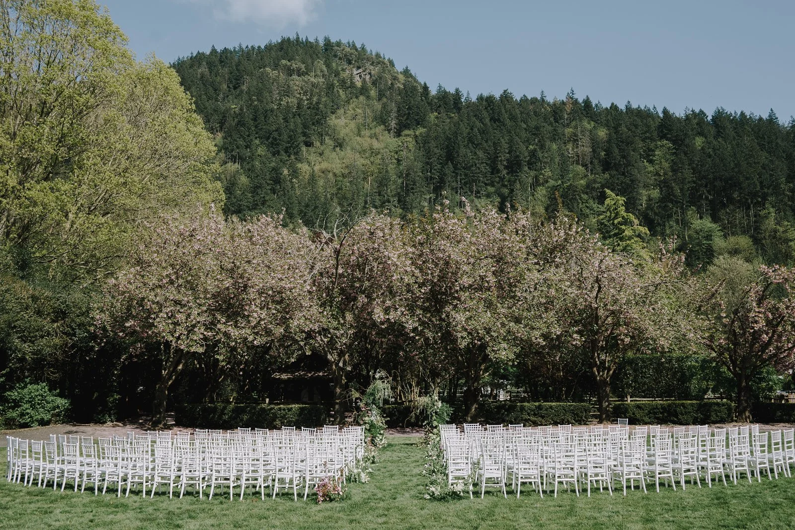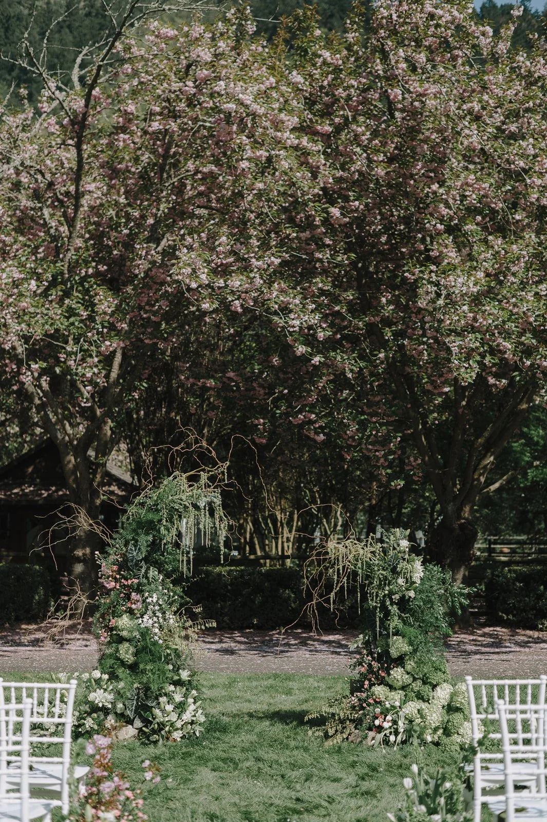 Fox Hollow Farm provided the perfect setting for Jenn and Dan’s April wedding. Located in Issaquah, the venue offers a serene, nature-forward environment that feels intimate while still accommodating a full celebration. April weather in Washington can be unpredictable, but the couple was gifted with sunny spring conditions that allowed guests to fully enjoy the outdoor spaces.